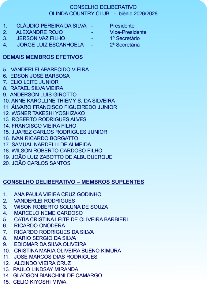 OLINDA COUNTRY CLUB Rua Saladino de Araujo Leite, 451 - Vila Olinda PIEDADE/SP CEP 18170-000 Fone (15) 3244-1383 email: contato@olindacountryclub.com.br